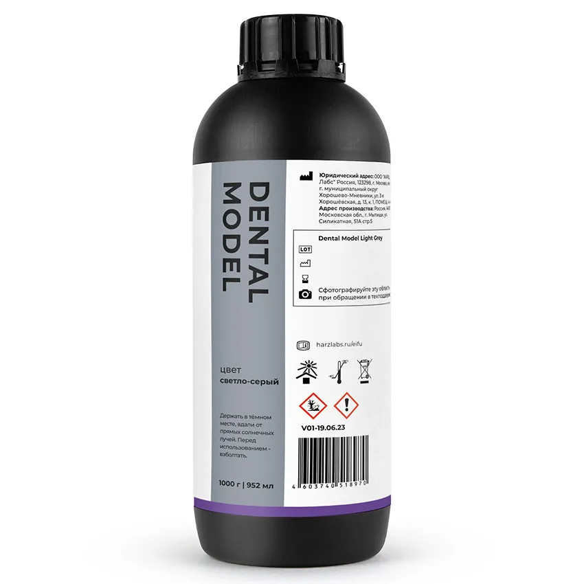 Фотополимерная смола HARZ Labs Dental Model Light Grey, светло-серого цвета (0,5 кг), предназначена для печати разборных, рабочих и диагностических стоматологических моделей.