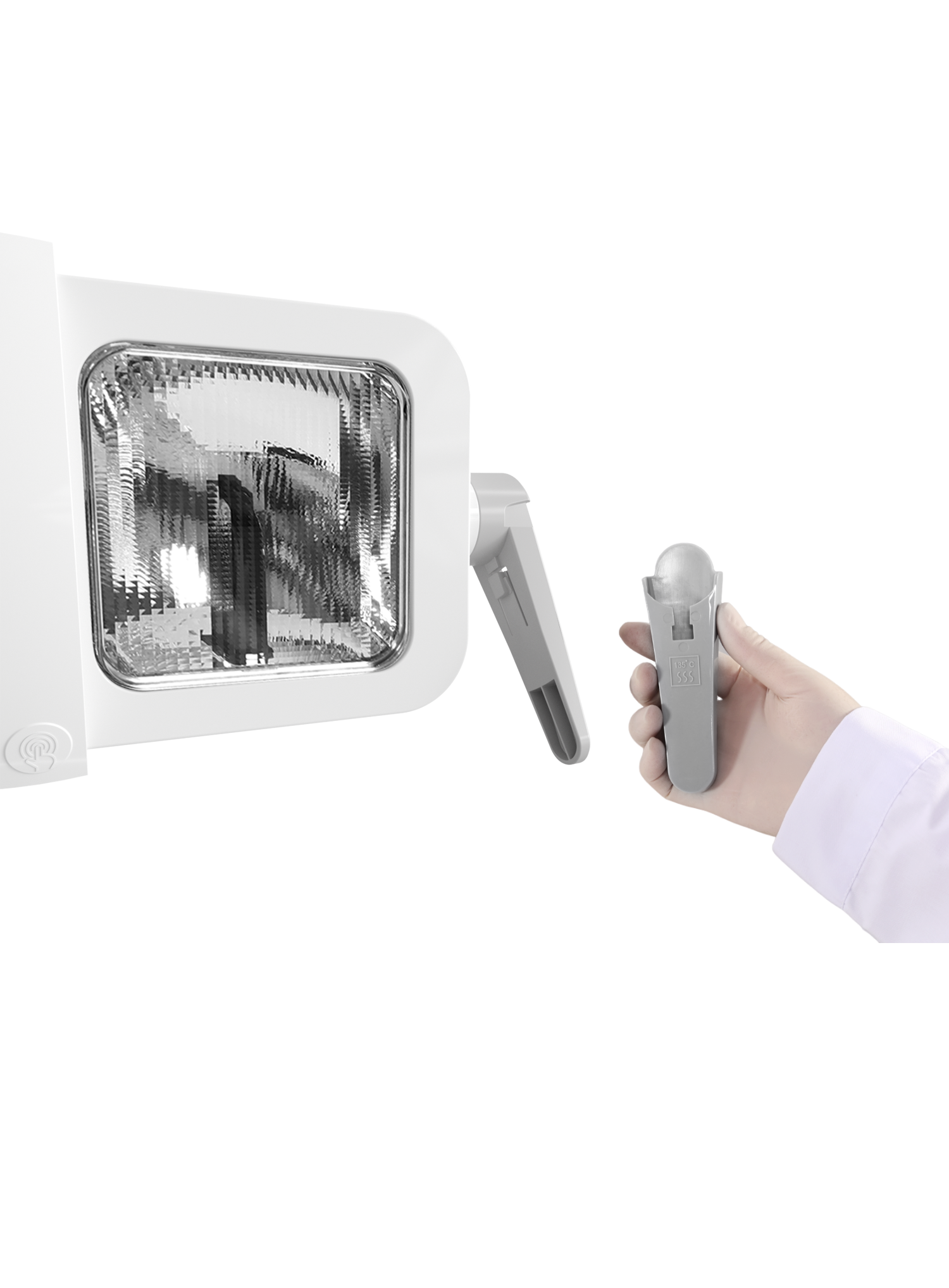 Удобная трёхшарнирная конструкция позволяет легко настроить положение светильника, а съёмная ручка упрощает процесс очистки и стерилизации.