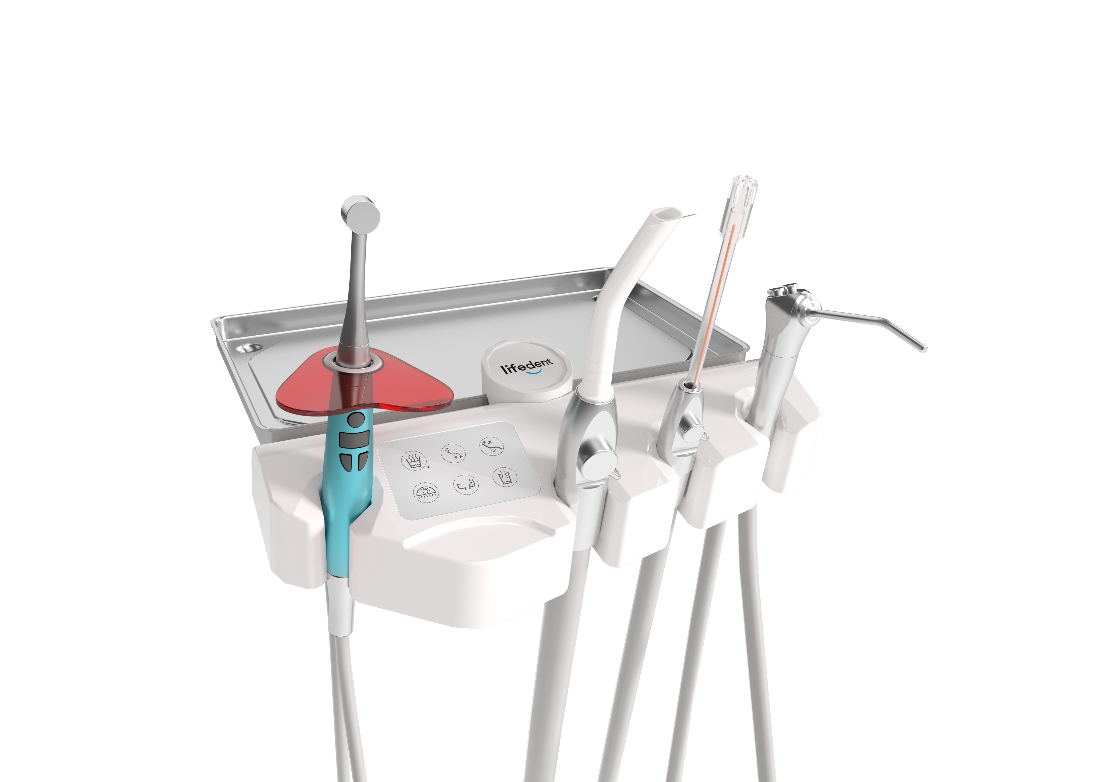 Установка Lifedent E9-i имеет удобную конструкцию: гидроблок, светильник и модуль врача крепятся к креслу пациента. Все коммуникации подводятся под кресло.